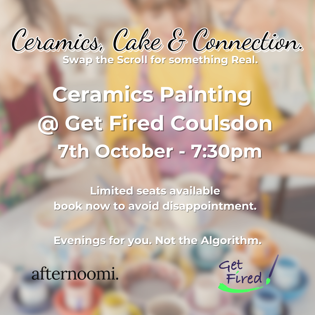 Spaces are limited to keep the evening intimate. Book your ticket today and join us for an evening of Ceramics, Cake & Connection.